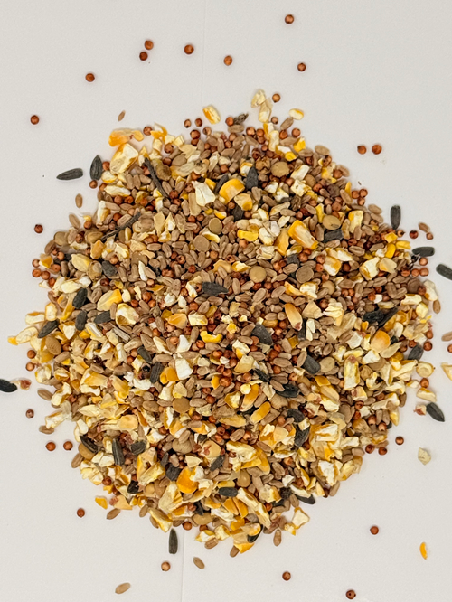 ANISE SCENTED, CRACKED CORN, SORGHUM, WHEAT, BLACK OIL SUNFLOWER, ROASTED SOY
