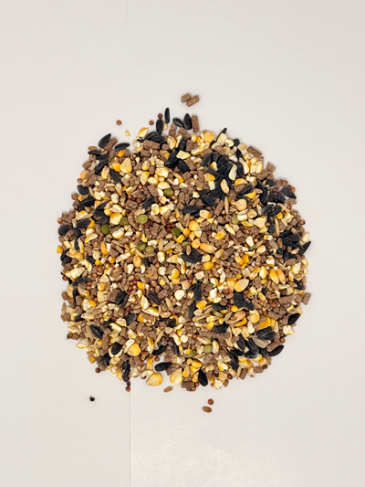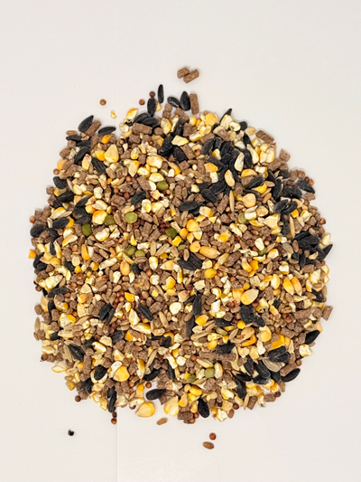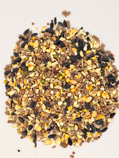 CRACKED CORN, SORGHUM, WHEAT, BLACK OIL SUNFLOWER, PELLETS, GREEN PEAS