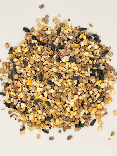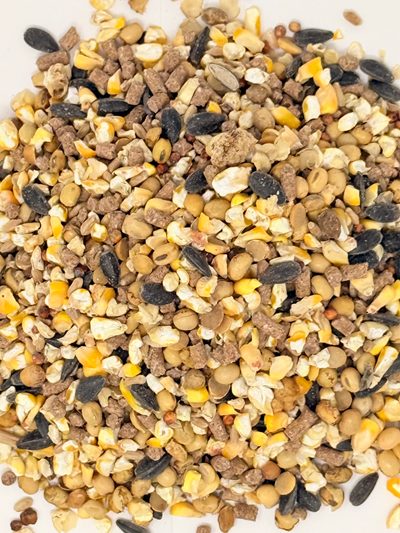 CRACKED CORN, SORGHUM, WHEAT, BLACK OIL SUNFLOWER, ROASTED SOY, PELLETS